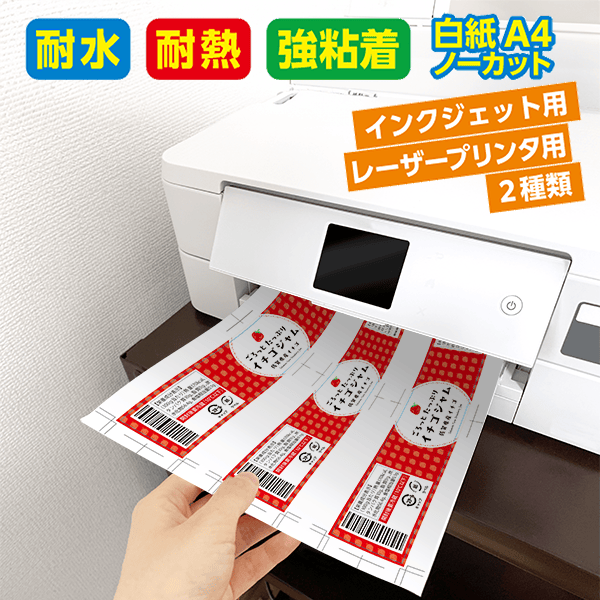 高い耐水・耐熱性も持った素材と溶剤系の強粘着糊を使用していますので、水濡れや屋外でも安心。破れたり・剥がれたりする心配が非常に少ない“プロ仕様”のラベルシート(ラベル用紙)です。